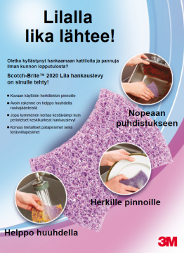 “3M Scotch-Brite 2020 – lila teho, turvallinen pinta.”