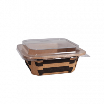 Annosrasian PET-kansi on läpinäkyvä ja tiivis kansi, suunniteltu sopimaan 1000/1200 ml pahvirasioihin. Kansimateriaali on PET, joka tarjoaa hyvän lujuuden ja läpinäkyvyyden, näin sisältö pysyy suojassa ja näkyvissä samanaikaisesti. Läpinäkyvä rakenne korostaa ruoan visuaalisuutta, mikä tekee siitä ihanteellisen ratkaisun take away -ruokien, salaattien ja jälkiruokien tarjoiluun.