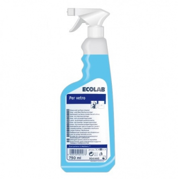 Ecolab Per Vetro 750 ml on valmiiksi käyttövalmis puhdistus- ja tahranpoistoaine, joka on kehitetty erityisesti lasi-, muovi- ja metallipintojen huolelliseen puhdistukseen. Tuote poistaa tehokkaasti rasvan, sormenjäljet ja muut tahrat, jättäen pinnat kirkkaiksi ja raitattomiksi – ilman ponnistusta.