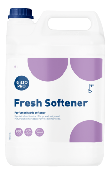 Kiilto Pro Fresh Softener huuhteluaine parantaa tekstiilien huuhtelutulosta ja lyhentää kuivumisaikaa. Tekstiilien sileys paranee jo Kiilto Pro Fresh Softenerin käytön myötä, mutta se tekee tekstiileistä myös helpommin silitettäviä. Kiilto Pro Fresh Softener poistaa myös sähköisyyden synteettisistä tekstiileistä. Tämä tekee tekstiilien hoidosta pesun jälkeen vaivatonta.