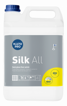 Helppolevitteinen ja askelvarma lattiavaha. Jättää kuivuttuaan puolikiiltävän pinnan. Pinnan kiiltoastetta voidaan säätää kalvojen lukumäärällä. Kiilto Silk All on kulutusta kestävä, helppohoitoinen lattiavaha. Tuotteella on erinomainen kemikaalinkesto, kestää myös käsihuuhteita. Tuote ei sisällä sinkkiä ja on näin ympäristömyötäisempi valinta.