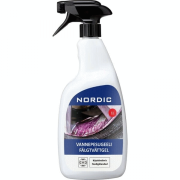 Nordic vannepesugeeli 1 L spray on tehokas ja pH-neutraali vannepesuaine, joka on suunniteltu poistamaan jarrupölyä, likaa ja tiepölyä ajoneuvojen vanteista. Geelimäinen koostumus tarttuu hyvin pintaan, mikä tehostaa puhdistusta ja antaa aineelle enemmän vaikutusaikaa. Tuote soveltuu säännölliseen käyttöön ja auttaa pitämään vanteet siisteinä ilman, että se rasittaa pintamateriaaleja. pH-neutraali koostumus tekee tästä vanteenpesuaineesta turvallisen useimmille vannepinnoille, kuten alumiini-, teräs- ja maalatuille pinnoille, kun sitä käytetään ohjeiden mukaisesti.