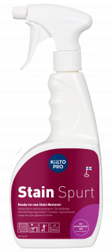 Kiilto Pro Stain Spurt on erityisesti kehitetty tehokkaaseen tahranpoistoon tekstiili- ja kovilta pinnoilta. Sen voimakas, mutta samalla turvallinen koostumus mahdollistaa vaikeiden tahrojen, kuten öljyn, rasvan, musteen ja ruokatahrojen, nopean poistamisen. Tarkoitettu käytettäväksi ammattikäytössä esimerkiksi pesuloissa ja siivousyrityksissä. Tahranpoistoaine on käyttövalmis ja helppokäyttöinen – suihkuta suoraan tahraan ja anna vaikuttaa ennen pesua. Katso myös Groffi peruspesu- ja rasvanpoistoaine.